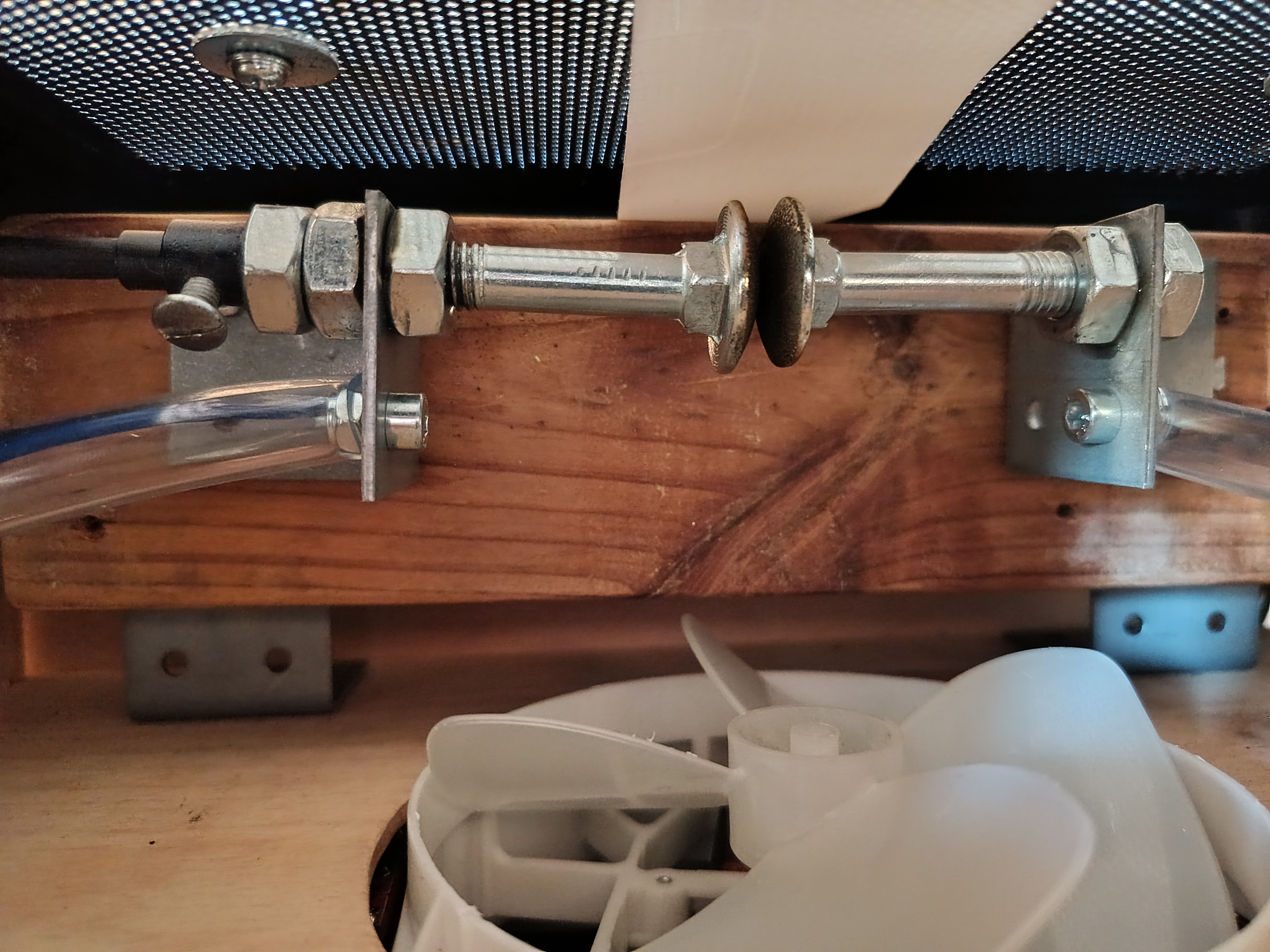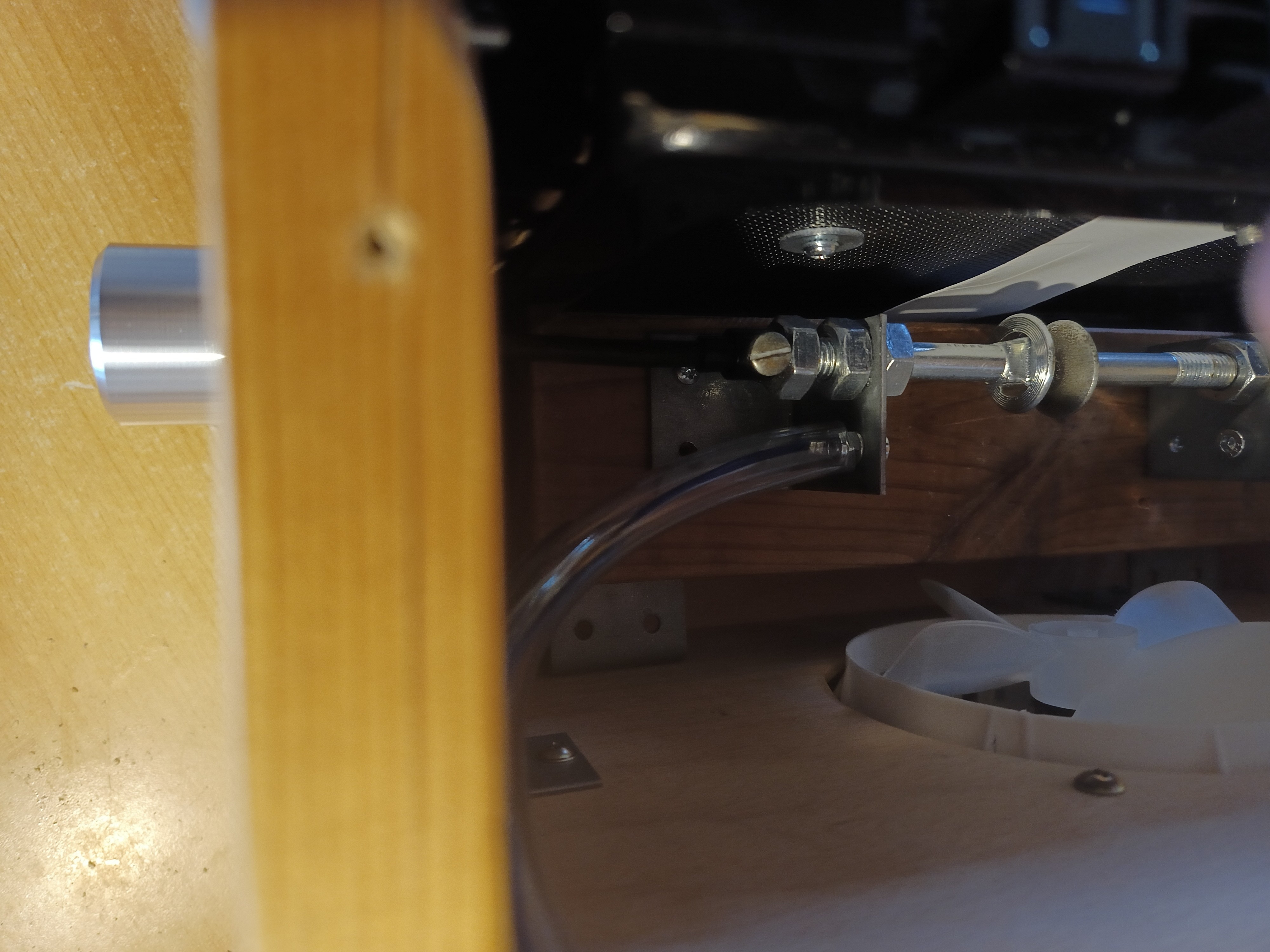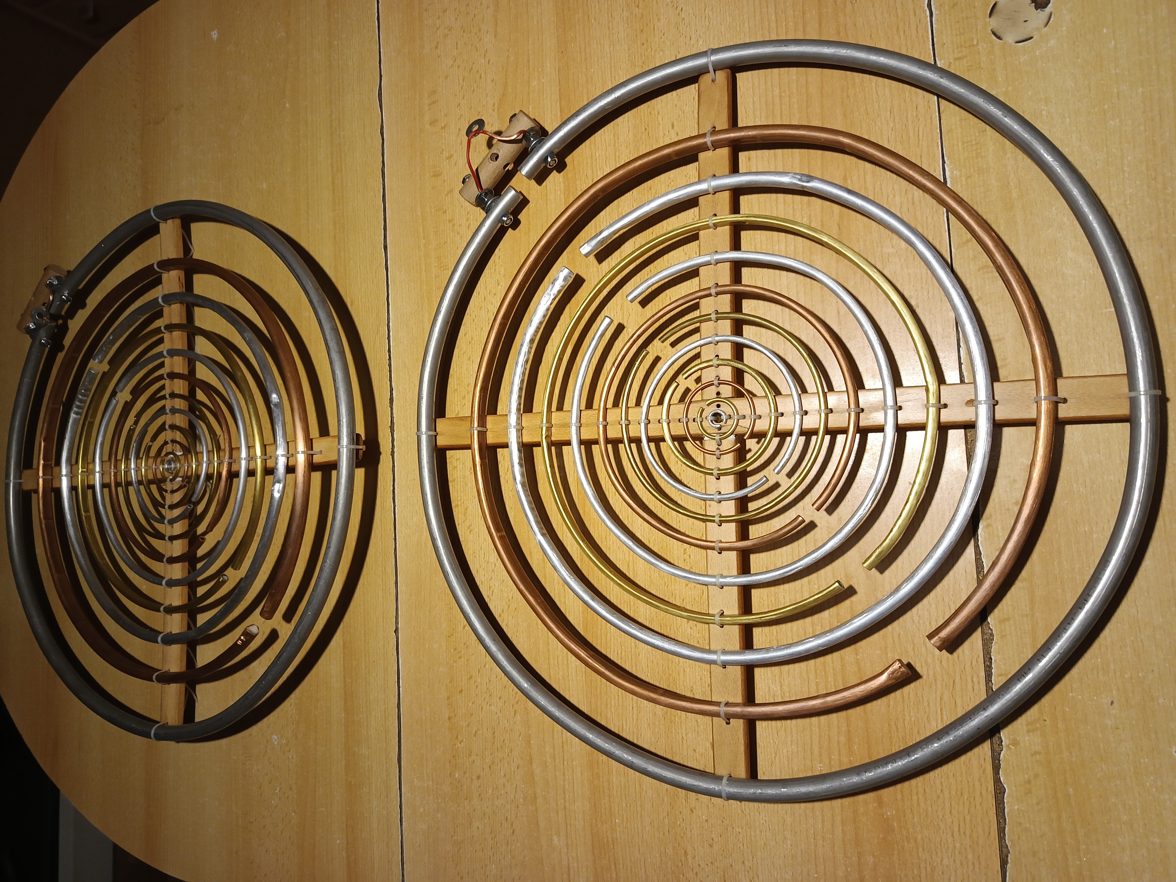 Vnitřní cívka je pak opatřena na vnějších koncích nalepeným dveřním těsněním (tlustým 4 mm a širokým 1 cm) a dvěma vruty přichycena do nosné bukové tyče ramene. Potom je vnořena do vnější trubky. Obě trubky jsou spojeny na krajích trojicí 5 mm šroubů.