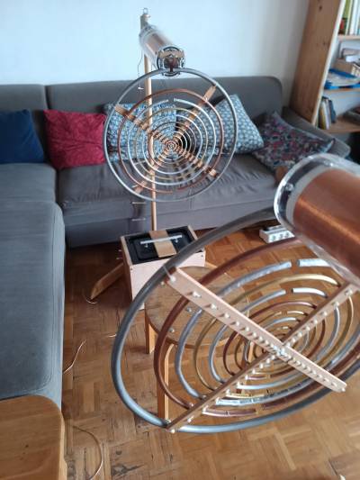 V září jsem dospěl do stavu, kdy jsem měl připraveny obě cívky vysílače a přijímače a generátor, který je napájí. Chybí mi koncové kruhové antény.