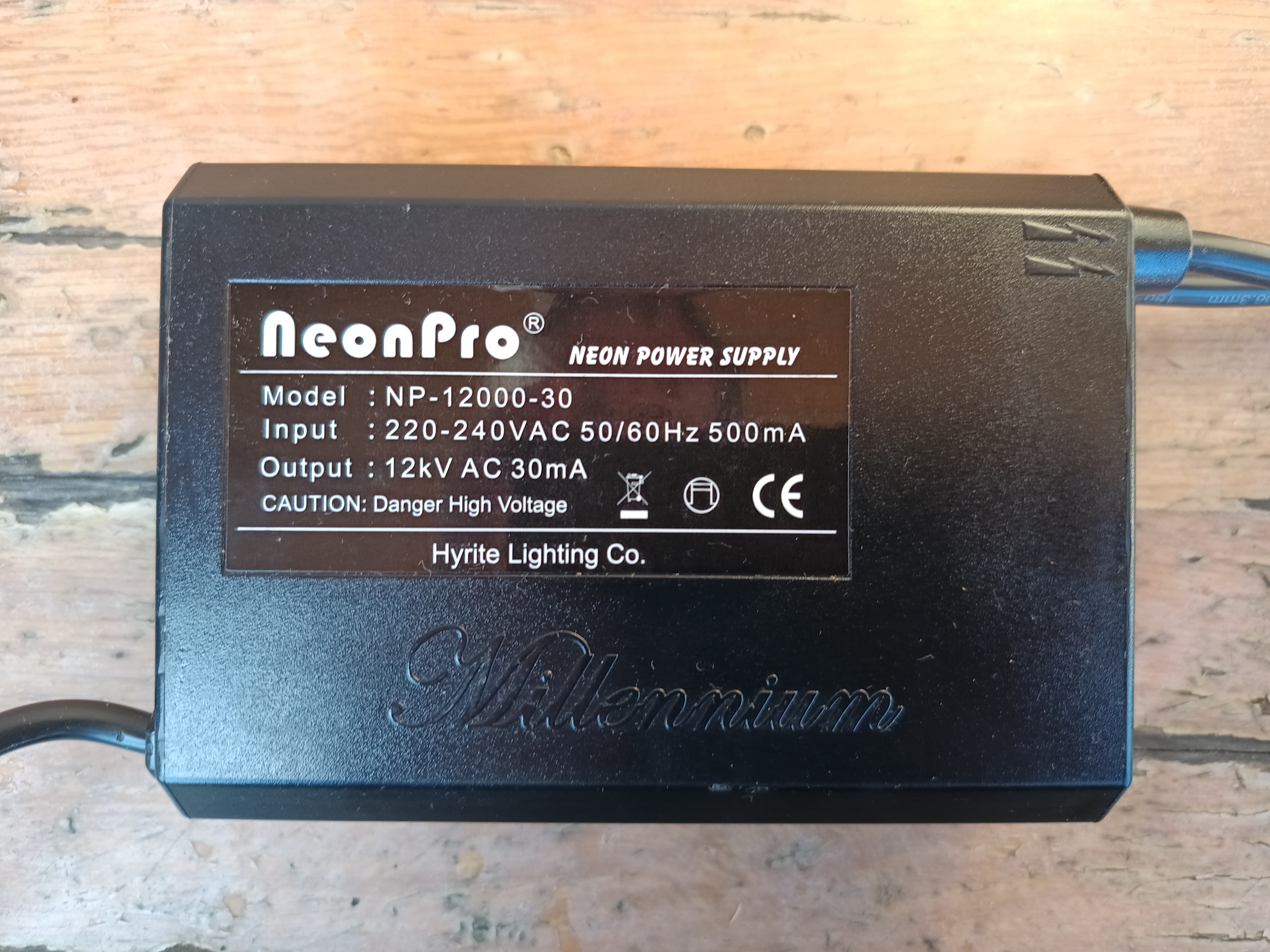 Zakoupil jsem elektronický zdroj NeonPro NP-12000-30 pro neonové trubice s vysokofrekvenčním výstupem 12 kV / 30 mA. Problém je, že po zapojení se nic neděje a zdroj nezačne dodávat napětí do jiskřiště. Důvodem je ochrana proti odpojení trubice, která je ve zdroji vestavěná. Po otevření zdroje vidím vše zalité v pryskyřici nebo něčem podobném a změna je tedy prakticky nemožná. Nechávám tedy zdroj být.