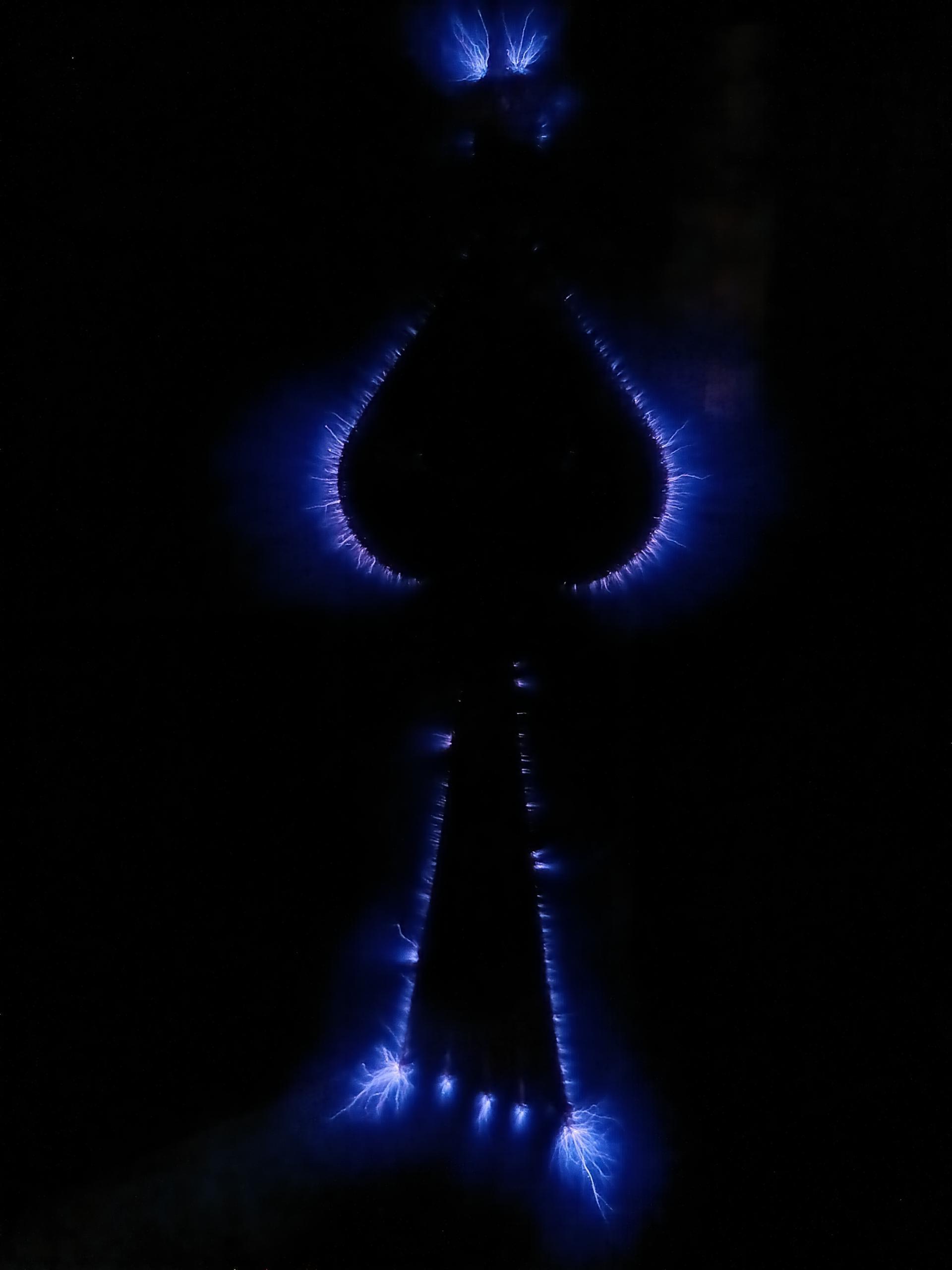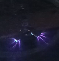 Zářivka mezi anténami svítí, tím více čím blíže k anténě, ale stejně tak svítí vyhořelá žárovka bez vlákna fialovými výboji uvnitř.