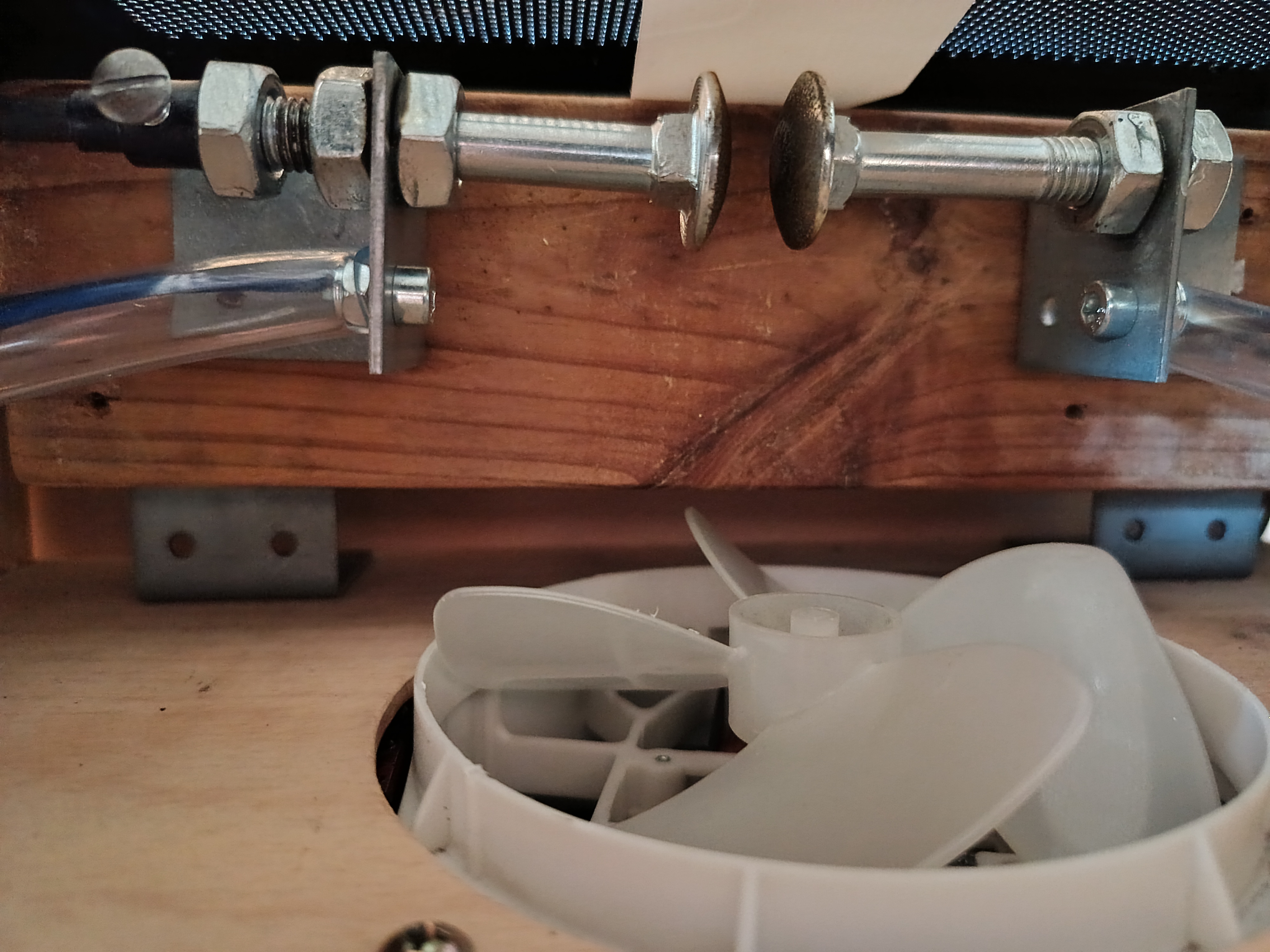 | nosná deska z dřevěné překližky | 1 | buk pro upevnění ventilátoru a jiskřiště |