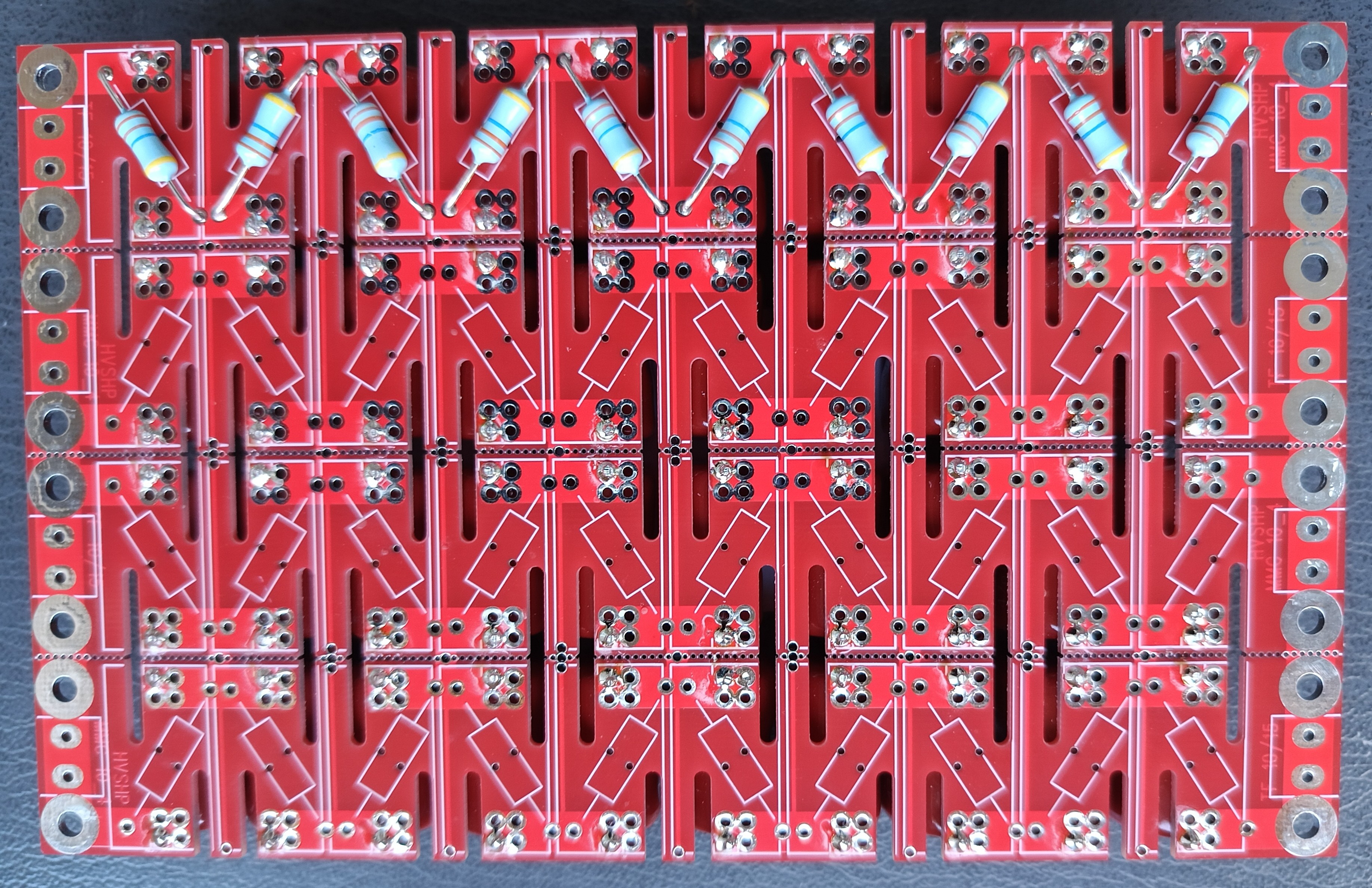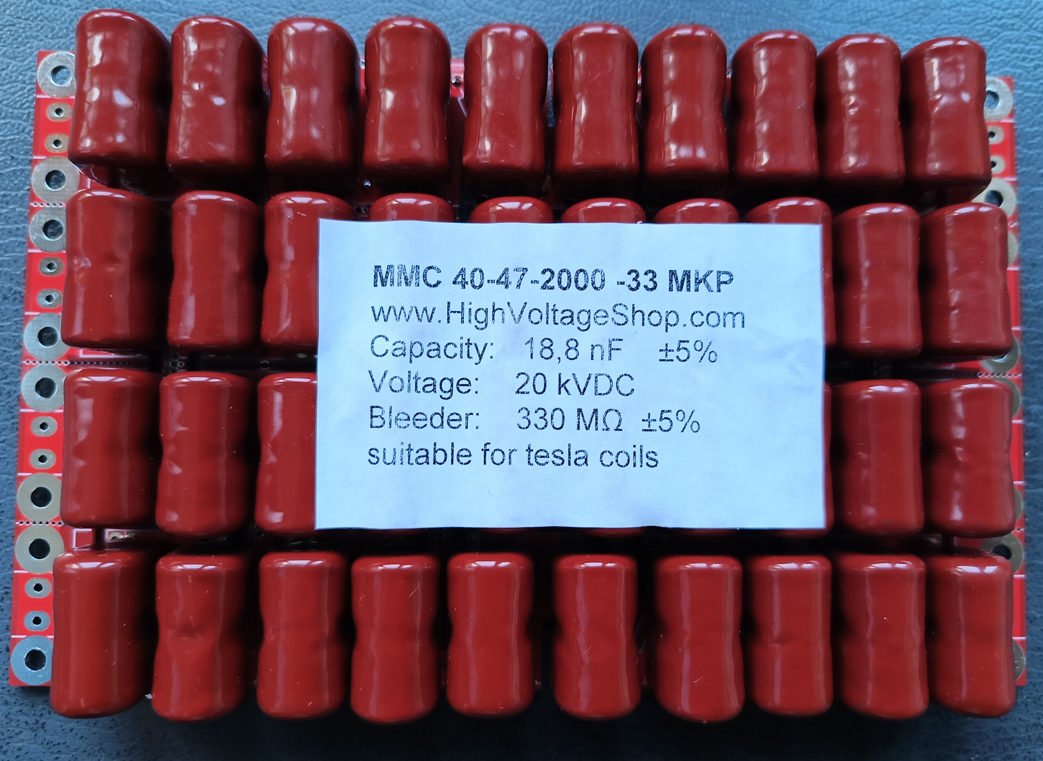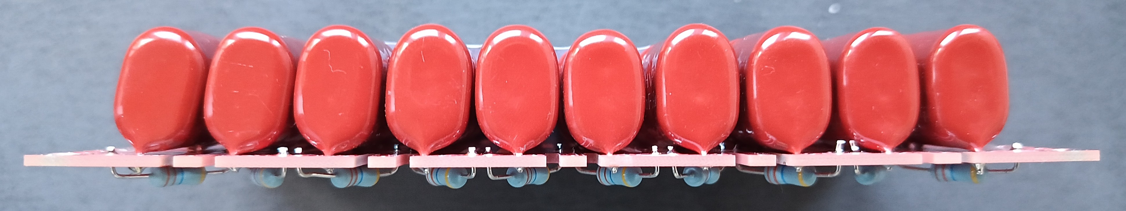 Zakoupil jsem 2 vysokonapěťová kondenzátorová pole MMC 18,8 nF / 20 kV (DC) a zabudoval je do přístroje.