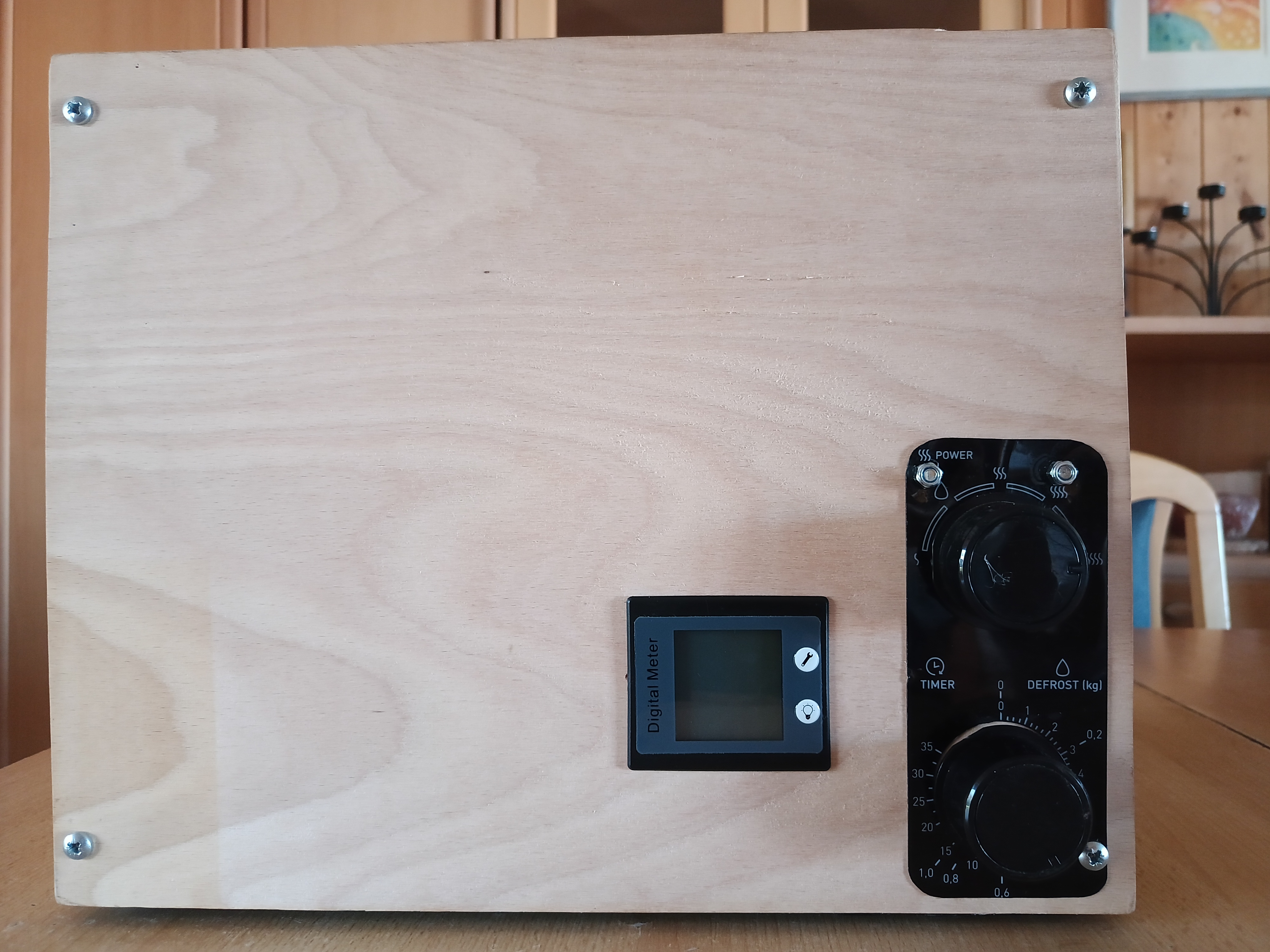 Digitální elektroměr na zařízení postupně odešel a ukazuje samé nuly, tak zatím slouží jako světýlko, že je zařízení zapnuto. Bude potřeba nějaký analogový ampérmetr. Ale to není tak důležité.